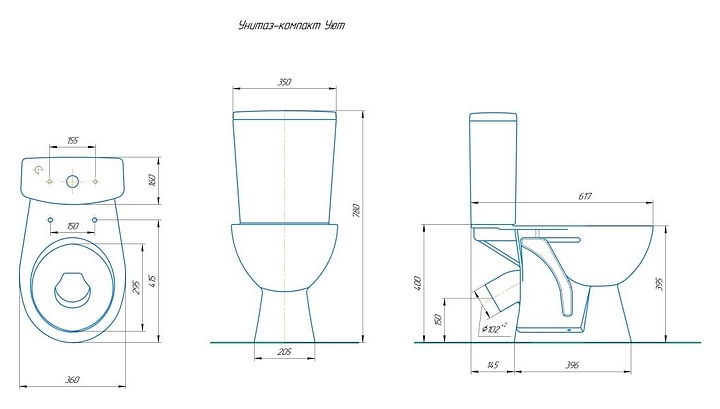 Унитаз-компакт ROSA Уют выполнен в современном стиле и предназначен для использования в туалетных комнатах. Напольная конструкция унитаза обеспечивает легкий монтаж и не требует специального ремонта в помещении. Изделие выполнено из санфарфора, который обладает повышенной прочностью и устойчивостью к негативным внешним факторам, а так же долгое время сохраняет идеальную белизну и не впитывает запахи и грязь. В комплект поставки входят унитаз, бачок и сиденье. Особенности: