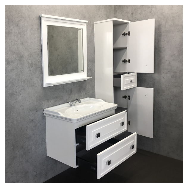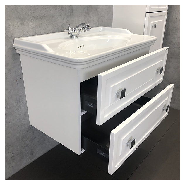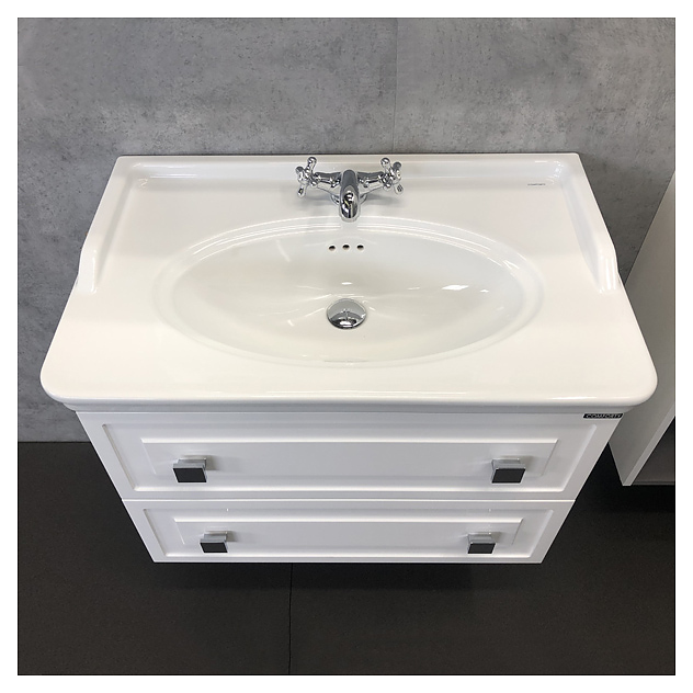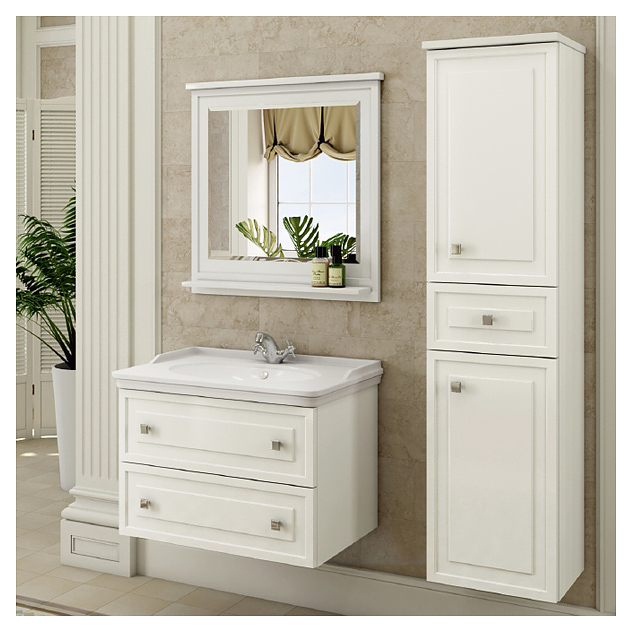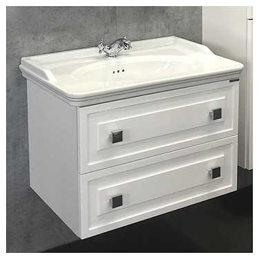 Тумба с раковиной Comforty Феррара-80 дополнит интерьер ванной комнаты. Благодаря подвесной конструкции модель не занимает много места, что экономит пространство и облегчает уборку. Тумба оснащена 2 выдвижными ящиками плавного закрывания. Раковина имеет широкие боковые поверхности для размещения аксессуаров, слив-перелив и отверстие для смесителя, расположенное по центру. Корпус выполнен из влагостойкой ЛДСП, фасад - из МДФ с покрытием эмалью, раковина - из санфарфора, который обладает повышенной прочностью и устойчивостью к негативным внешним факторам, не впитывает запахи и грязь. В комплект входит раковина Comforty 50180. Дополнительные характеристики: