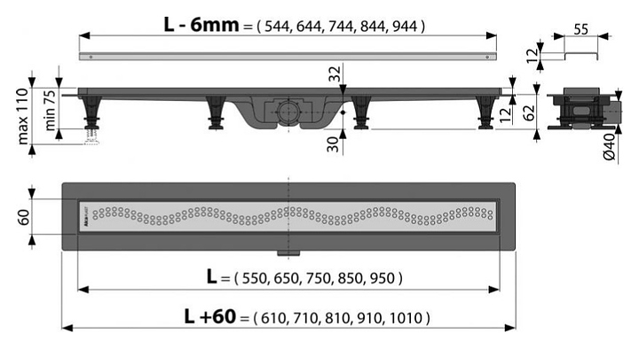 Душевой лоток AlcaPlast APZ8-850M редназначен для использования в ванных и душевых комнатах в общественных местах. Модель оснащена комбинированным гидрозатвором предотвращающим распространение запахов из канализационной системы, водоотводящим желобом и решеткой. Водоотводящий желоб и сливные трапы выполнены из пластика, пороги и решетка - из нержавеющей стали, сифон - из полипропилена с тальком, устойчивого к механическим, химическим и термическим повреждениям. Особенности: