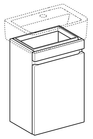 Тумба под раковину Geberit Renova Plan 869045000 лаконичных форм элегантно впишется в интерьер Вашего дома. Благодаря подвесной конструкции модель не занимает много места, что экономит пространство в ванной комнате и облегчает уборку. Тумба оснащена одной переставной полкой и распашной дверью с утопленной ручкой для открывания. Корпус изготовлен из влагостойкой трехслойной ДСП, фронтальная часть из МДФ с высокоглянцевым покрытием. В комплект поставки входит набор крепежей. Тумба используется с раковинами шириной 450 мм 272145000 Особенности: