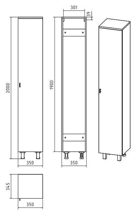 Шкаф-пенал Misty Дива 35 35х190 см, правый, белый