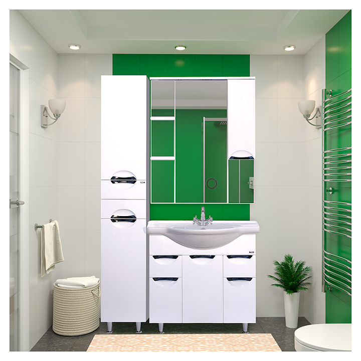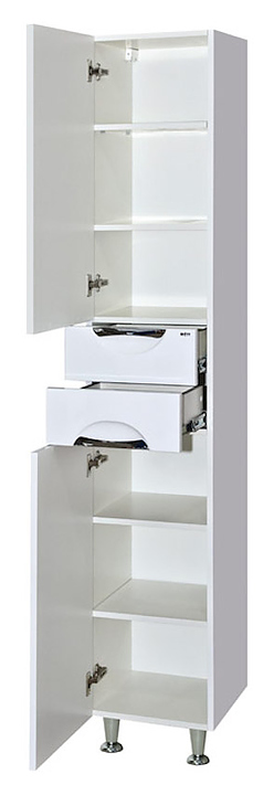 Шкаф-пенал Misty Орхидея-35 выполнен в современном стиле. Напольная конструкция обеспечивает легкий монтаж и не требует специального ремонта в помещении. Модель оснащена 2 закрытыми отделениями с распашными дверцами, за которыми расположены полки, на которых удобно расположить ванные принадлежности, а также 2 выдвижными ящиками с шариковыми направляющими. Корпус изделия выполнен из ЛДСП, которая отличается влагостойкостью, прочностью, устойчивостью к перепадам температурных режимов, способностью сохранять цвет и форму изделия в первозданном виде длительный срок, фасад - из МДФ с эмалевым покрытием, полки - из ЛДСП. Шкаф-пенал является частью гарнитура для ванной комнаты Орхидея. Комплектация:
