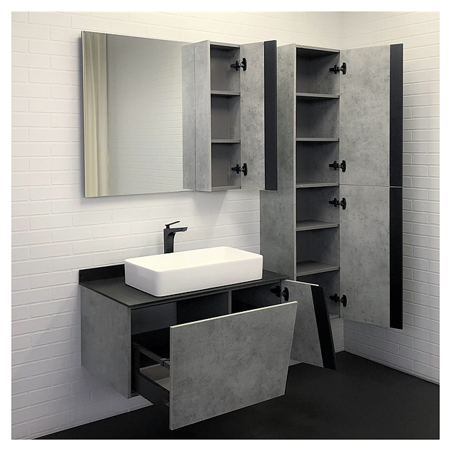 Тумба с раковиной Comforty Эдинбург-90 дополнит интерьер ванной комнаты. Благодаря подвесной конструкции модель не занимает много места, что экономит пространство и облегчает уборку. Тумба оснащена выдвижным ящиком и распашной дверцей с системами открытия при нажатии Push-to-Open. Изделие выполнено из влагостойкой ЛДСП, столешница и плинтус - из керамогранита, раковина - из санфарфора, который обладает повышенной прочностью и устойчивостью к негативным внешним факторам, не впитывает запахи и грязь. В комплект входит раковина Comforty 78189. Дополнительные характеристики: