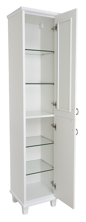 Шкаф-пенал Misty Версаль-35 выполнен в классическом стиле. Напольная конструкция обеспечивает легкий монтаж и не требует специального ремонта в помещении. Модель оснащена 2 закрытыми отделениями с распашными дверцами и стеклянными полками внутри. Корпус и фасад изделия выполнены из МДФ с эмалевым покрытием, полки - из стекла. Шкаф-пенал является частью гарнитура для ванной комнаты Версаль. Комплектация: