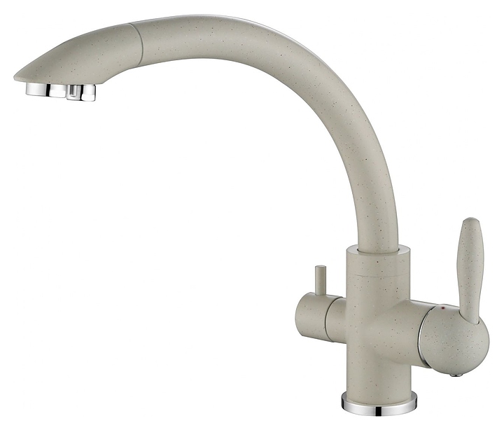 Смеситель Paulmark Essen Es213001-331 предназначен для подачи горячей и холодной воды в кухонных помещениях. Модель имеет дополнительный излив для питьевой воды и аэратор, который уменьшает шум и снижает количество брызг. Керамический картридж обеспечивает плавный ход рычага смесителя, контроль и точность при выборе напора и температуры воды. Изделие выполнено из латуни, отличающейся прочностью, долговечностью и устойчивостью к перепадам температур. В комплект поставки входят крепления, аэратор и гибкая подводка. Дополнительные характеристики: