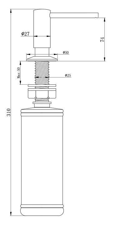 Встраиваемый дозатор Paulmark Brevit D005-418 предназначен для подачи жидкого мыла или моющего средства на кухне. Изделие выполнено из латуни и пластика. Дополнительные характеристики: