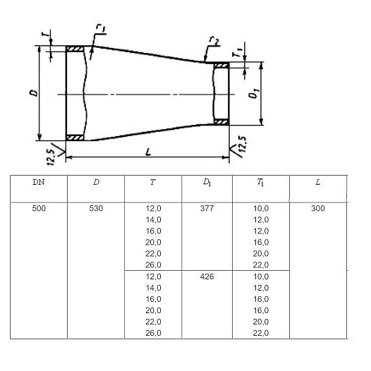 Переход Россия сталь концентрический Дн 325х8,0-273х7,0 (Ду 300х250) бесшовный ГОСТ 17378-2001 РБ