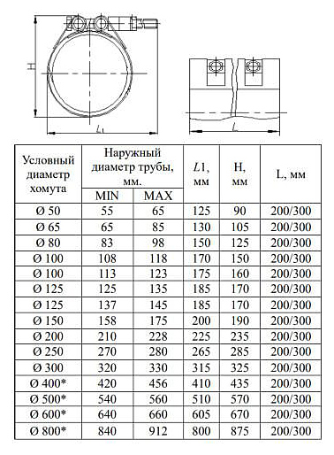 Хомут ремонтный односторонний Россия Ду 125 L=200 мм
