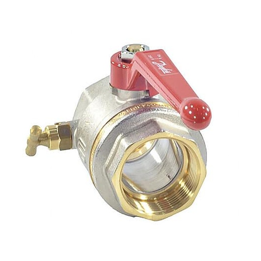 Кран шаровой DANFOSS со спускником BVR-D никель Ду 32 Ру40 ВР G1 1/4" рычаг полнопроходной со спускником 065B8219