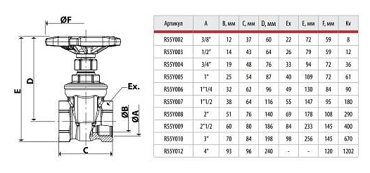 Задвижка клиновая Giacomini R55 Ду 40 Ру16 ВР маховик R55Y007
