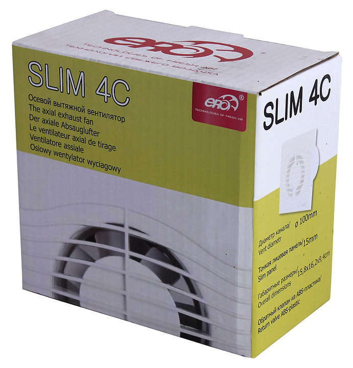 Вентилятор бытовой Эра 100 SLIM 4C используется в ванных и туалетных комнатах, кухнях и помещениях под котельное оборудование жилых и офисных помещений, кафе и ресторанов для постоянной или периодической циркуляции воздуха. Модель оснащена защитной решеткой, электродвигателем на шарикоподшипниках световой индикацией работы и обратным клапаном, который предотвращает проникновение неприятных запахов из шахты. Модель выполнена из ABS-пластика. Особенности: