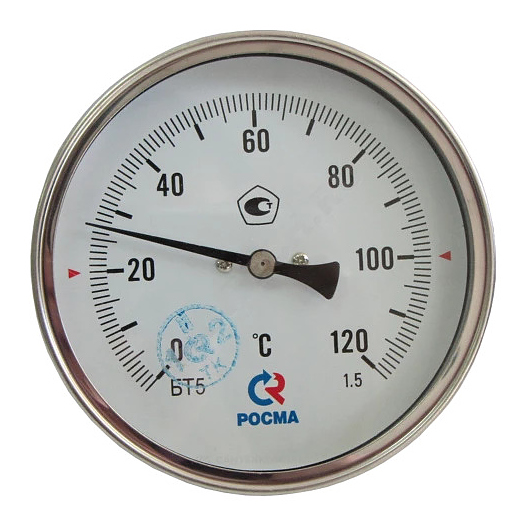 Термометр биметаллический осевой Росма Дк100 L=100мм G1/2" 120С БТ-51.211