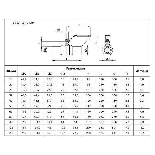 Кран шаровой DANFOSS сталь JIP Standard WW Ду 15 Ру16 п/привар