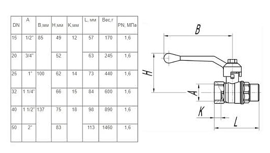 Кран шаровой ГАЛЛОП Стандарт 221 аналог 11б27п1 Ду 50 Ру16 ВР/НР полнопроходной рычаг