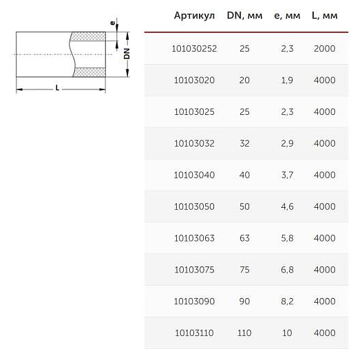 Труба VALFEX 10103090 Дн 90х8,2, Ру10, SDR11, Т20С, 4 метра