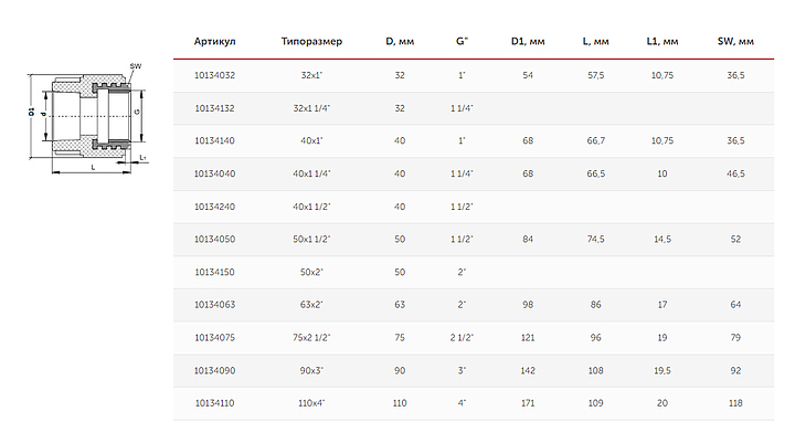 Муфта комбинированная под ключ VALFEX 10134110, ВР Дн 110х4"