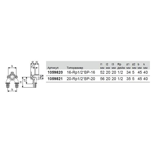 Водорозетка Uponor U-профиль проходная для PE-X труб латунь Дн 20х1/2" ВР Smart Aqua Q&E 1059821