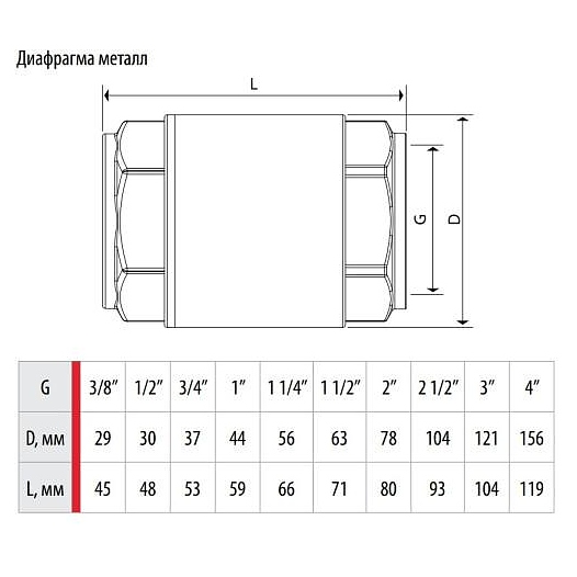 Клапан обратный Giacomini осевой R60 Ду 40 Ру25 Тмакс=110 оС ВР 1 1/2" диск металл