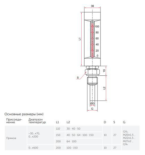 Термометр жидкостной Росма ТТ-В-150, прямой 150/40, 160С