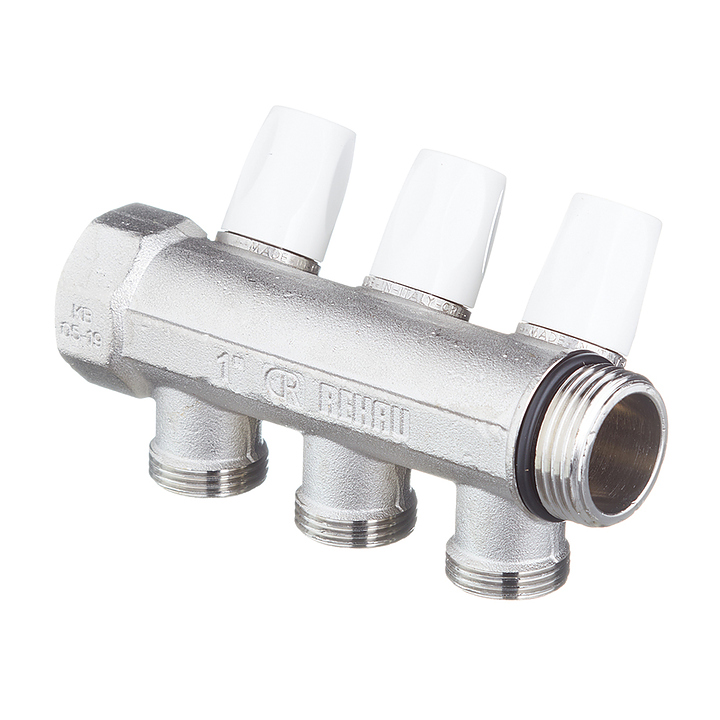 Коллектор Rehau 11316451001 1" ВР/НР на 3 вых 3/4" НР м/о 40мм под евроконус с запорно-регулирующими клапанами