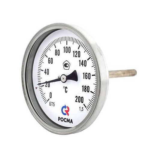Термометр биметаллический осевой Росма Дк100 L=100мм G1/2" 200С БТ-51.211