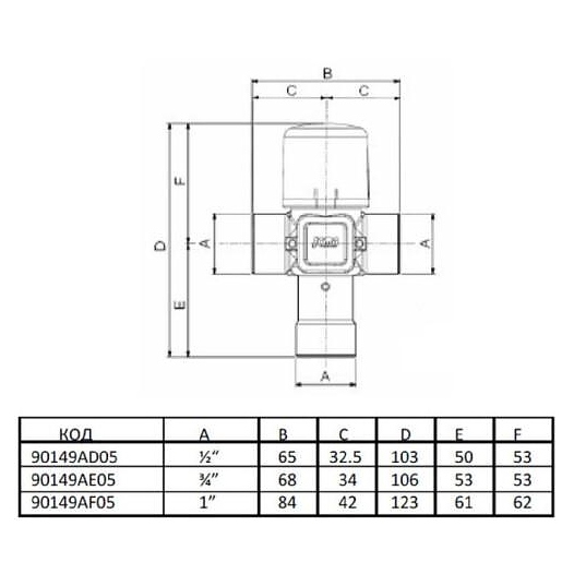 Клапан смесительный Icma термостатический седельный Ду 15 Ру10 1/2" ВР Kvs=1.5м3/ч 60С