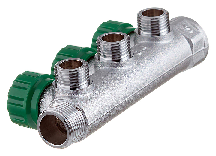 Коллектор FAR MULTIFAR FK 3822 3412TP предназначен для равномерного распределения поступления рабочей жидкости по контурам в системах отопления и водоснабжения. Коллектор с 3 отводами с соединением FLAT-FACED оснащен регулирующими вентилями с двусторонним диском «синий-красный» и диском с обозначением для сантехнических установок или отопительных систем. Коллектор изготовлен из латуни марки CW617N с хромированным покрытием. Дополнительные характеристики: