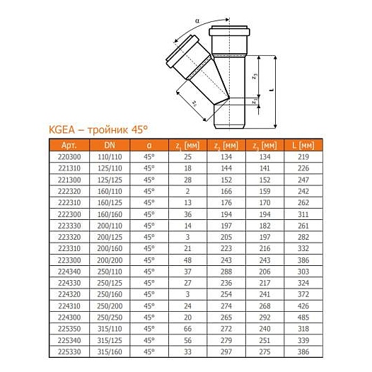 Тройник Ostendorf НПВХ с раструбом коричневый Дн 200х110х45гр б/нап в/к KGEA