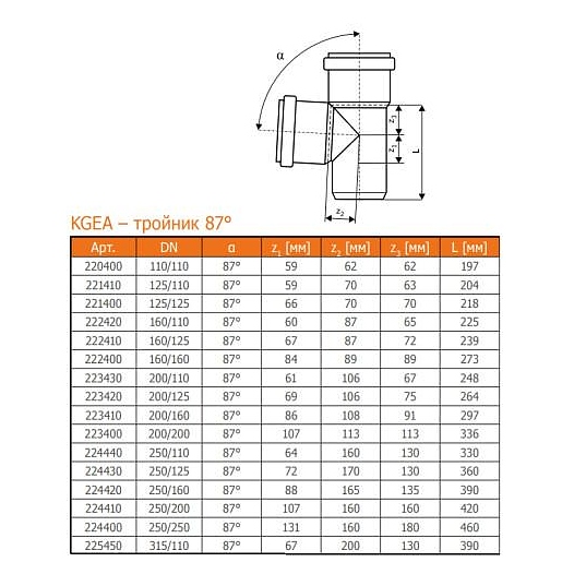 Тройник Ostendorf НПВХ с раструбом коричневый Дн 200х110х87гр б/нап в/к KGEA