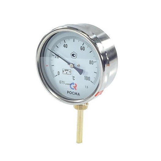 Термометр биметаллический радиальный Росма Дк100 L=64мм G1/2" 100С БТ-52.211
