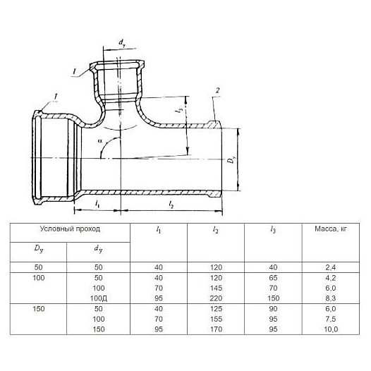 Тройник чугун канализационный Россия Ду 100х100х90гр б/н ГОСТ 6942-98 прямой