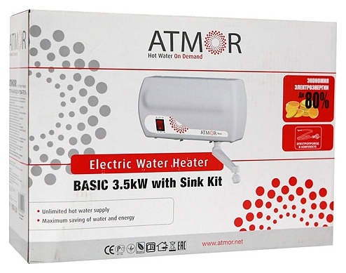 Проточный водонагреватель Atmor BASIC 3,5 KW TAP в комплекте с краном