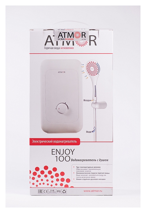 Проточный водонагреватель Atmor ENJOY 100 3,5 KW SHOWER в комплекте с душем