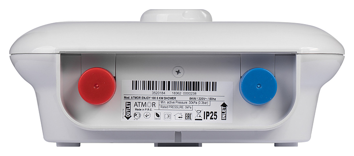 Электрический проточный водонагреватель Atmor ENJOY ENJOY 100 5 KW TAP используется в местных системах водоснабжения для постоянного автономного обеспечения горячей водой одной или нескольких точек водоразбора таких как санитарные узлы, кухни в жилых и загородных частных домах, а также других бытовых и хозяйственных объектах. Модель оснащена нагревательной емкостью, погружным трубчатым электронагревателем (ТЭНом), термостатом, резьбовыми штуцерами для подвода холодной и выхода горячей воды, а также поворотным регулятором. Вертикально ориентированный корпус выполнен из ударопрочного пластика белого цвета, покрытие ТЭНа – из меди. В комплект поставки входят гибкий излив для раковины и инструкция по эксплуатации. Особенности: