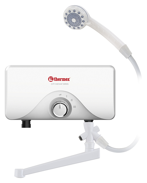 Проточный водонагреватель THERMEX City 6500 используется в системах водоснабжения для постоянного автономного обеспечения горячей водой жилых, бытовых, производственных, сельскохозяйственных помещений. Модель оснащена нагревательным элементом ТЭНом с медным покрытием, резьбовыми штуцерами для подвода холодной и выхода горячей воды. Горизонтально ориентированный влагозащищенный корпус выполнен из ударопрочного пластика с фронтальной крышкой белого цвета. В комплект поставки входят водонагреватель, душевая насадка и излив с переходником, руководство по эксплуатации. Особенности: