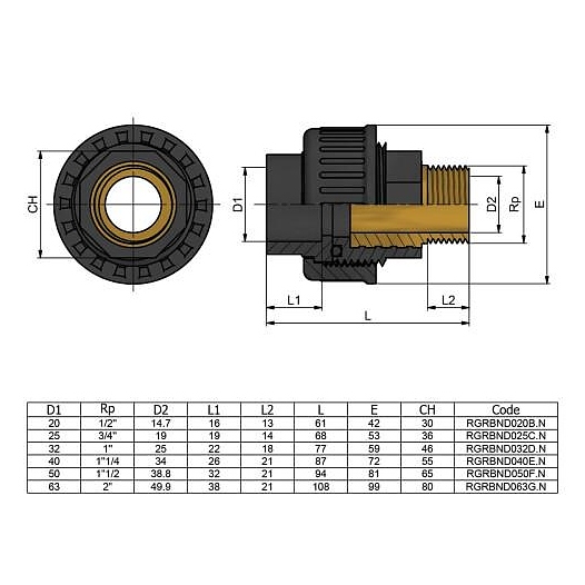 Муфта EFFAST ПВХ серый под клеевое соед разъемная Дн 63х2" Ру16 НР напорная
