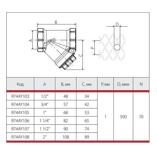 Фильтр магнитный Giacomini сетчатый Y-образный латунь Ду 32 Ру30 G1 1/4" ВР R74M
