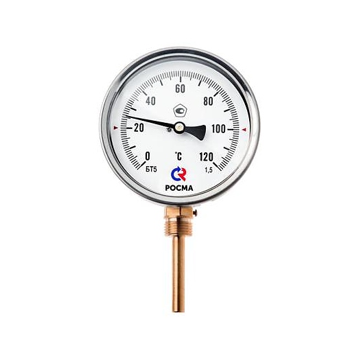 Термометр биметаллический радиальный Росма Дк100 L=100мм G1/2" 160С БТ-52.211