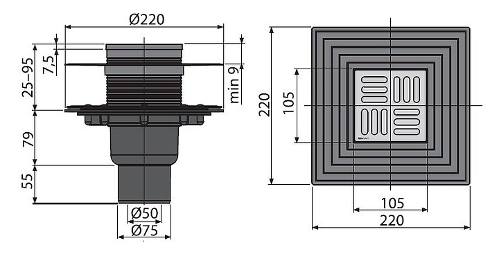Трап регулируемый AlcaPlast APV4344 предназначен для приема и отведения в канализационную сеть сточных вод с поверхности пола в ванных комнатах жилых помещений. Трап оснащен решеткой, мокрым запахозапирающим гидрозатвором и сухим механическим затвором. Корпус и желоб выполнены из полипропилена, устойчивого к механическим, химическим и термическим повреждениям, решетка и фланец - из нержавеющей стали, гидрозатвор - из АВС пластика. В комплект поставки трапа входит: корпус сливного трапа, горловина сливного трапа, решетка из нержавеющей стали, мокрый и сухой гидрозатвор, фланец с монтажным набором, воротник с 2-х уровневой изоляцией, комплект прокладок. Особенности: