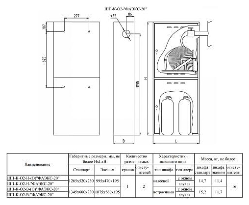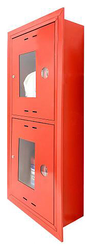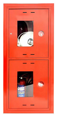 Шкаф пожарный ФАЭКС ШПК 320 ВОК используется хранения комплекта пожарного оборудования на предприятиях, производствах, жилых домах и государственных учреждениях. Шкаф состоит из 2 секций, одна оснащена поворотной рукавной кассетой для одного напорного рукава, другая рассчитана на 2 огнетушителя, закрываются дверцей открытого типа со смотровым окном с почтовым замком и карманом для хранения ключей. Корпус выполнен из стали и окрашен краской. Особенности: