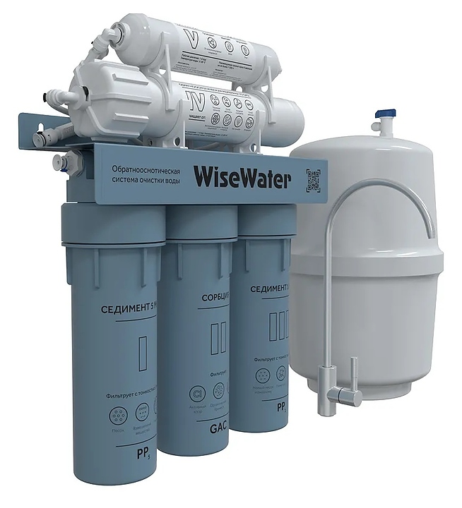 Обратноосмотическая установка WiseWater Osmos Optimum используется в частных домах и коттеджах для эффективной очистки водопроводной воды от солей жесткости, железа, марганца, мелкодисперсных взвесей, мутности, цветности, бактерий и запаха сероводорода. Ультратонкая очистка обеспечивается за счёт высокопроизводительной мембраны с мелкопористой структурой, что обеспечивает первоклассное качество водоочистки и не позволит проникнуть загрязняющим веществам в воду. Корпус выполнен из высокопрочного пищевого пластика. В комплект поставки входит накопительный бак, кран для подачи воды и всё необходимое для установки и эксплуатации системы. Особенности: