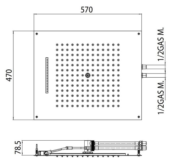 Верхний душ Bossini Dream 2 H38926.030 выполнен в современном стиле. Модель оснащена душевой головкой квадратной формы и образует большую зону принятия душа. Известковый налет на силиконовых форсунках с легкостью удаляется благодаря технологии Easy-Clean. Изделие выполнено из нержавеющей стали, которая отличается практичностью и долговечностью использования в помещениях с повышенной влажностью. В комплект поставки входит гибкая подводка для подключения к водоснабжению. Особенности: