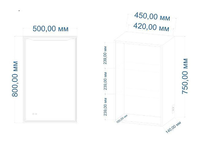 Левосторонний зеркальный шкаф Art&Max Merano AM-Mer-500-800-1D-L-DS-F выполнен в современном стиле и отлично дополнит интерьер любой ванной комнаты. Благодаря подвесной конструкции модель не занимает много места, что позволяет экономить пространство в ванной комнате. Шкаф оснащен распашной дверью плавного закрывания, 2 полочками внутри, светодиодной LED подсветкой с диммером, функцией антизапотевания и розеткой. Питание светильника осуществляется от сети через блок питания постоянного напряжения. Корпус выполнен из МДФ, фасад - из влагостойкой глянцевой ЛДСП, зеркало - влагостойкое. В комплект поставки входят провод с вилкой, розетка и навес. Дополнительные характеристики: