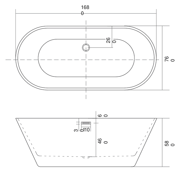 Ванна Aquatek Хорса 168х76 см, акрил, белая глянцевая