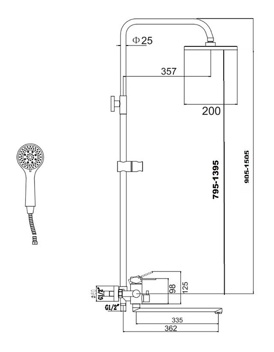 Душевая стойка Fmark FS8345-35 используется в ванных комнатах. Изделие оснащено круглыми верхним душем и ручной лейкой. Керамический картридж обеспечивает плавный ход рычага смесителя, контроль и точность при выборе напора и температуры воды. Изделие выполнено из нержавеющей стали, отличающейся прочностью, долговечностью и устойчивостью к коррозии. Дополнительные характеристики: