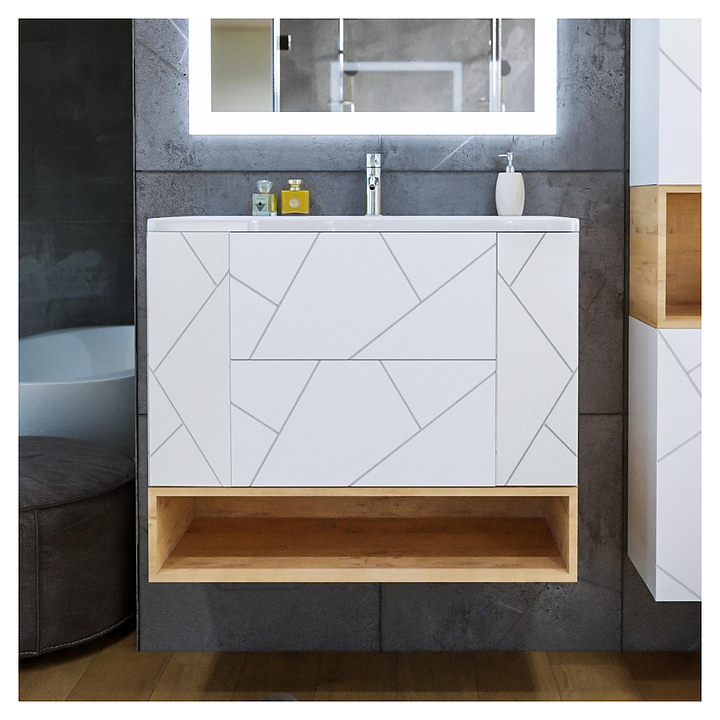 Ниша БРИКЛАЕР Кристалл 90 предназначена для установки с тумбой Кристалл 90. Благодаря подвесной конструкции ниша не занимает много места, что позволяет экономить пространство в небольшой ванной комнате, а также облегчает уборку. Модель оснащена открытым отделением, в котором удобно разместить все необходимые принадлежности. Характеристики:
