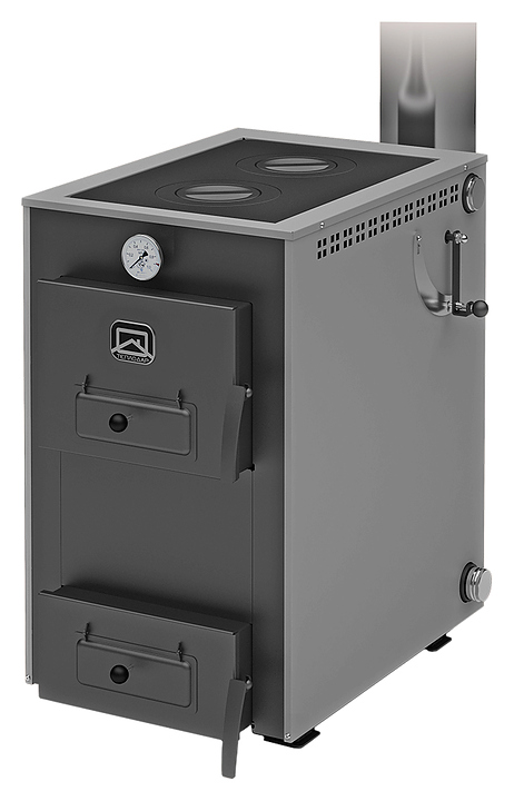 Отопительный котел Теплодар Куппер Практик-22 В используется как самостоятельный источник тепловой энергии или как дополнение к существующим системам отопления в частных домах, гаражах, на дачах и в других помещениях. Универсальная модель может работать как в закрытых, так и в открытых отопительных системах с принудительной или естественной циркуляцией теплоносителя. Корпус котла выполнен из качественной конструкционной стали, наружные поверхности корпуса тепловой рубашки облицованы декоративными панелями с полимерным покрытием. В комплект поставки входят кочерга, шуровка и поворотный шибер. Особенности: