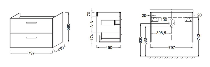 Тумба с раковиной Jacob Delafon OLA EB391RU-N14 + EXTA112-00 дополнит интерьер ванной комнаты. Благодаря подвесной конструкции модель не занимает много места, что позволяет экономить пространство и облегчает уборку. Тумба оснащена 2 выдвижными ящиками с механизмом плавное закрывание для бесшумной работы. Раковина выполнена из огнеупорной керамики, которая отличается повышенной прочностью и гигиеничностью, а также долгое время сохраняет идеальную белизну и не впитывает запахи и грязь. В комплект поставки входят тумба под раковину OLA EB391RU-N14 и раковина OLA EXTA112-00. Смеситель в комплект поставки не входит и приобретается отдельно. Дополнительные характеристики:
