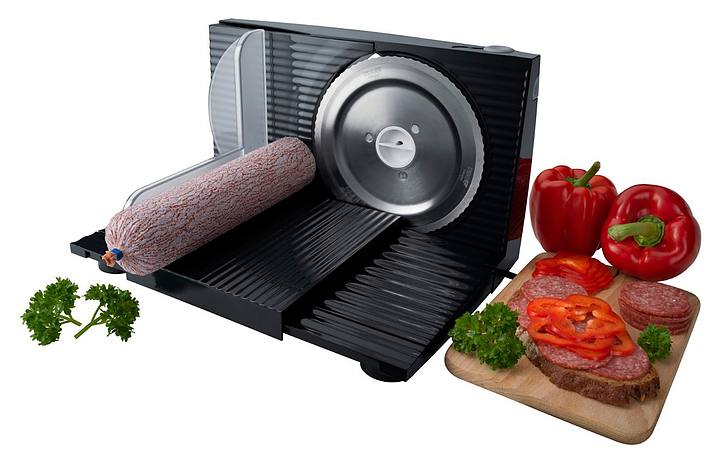 Ломтерезка Steba AS 100 предназначена для нарезки хлеба, мяса, сыра и других видов продуктов в квартирах, частных домах, отелях и офисах. Модель оснащена нескользящими прорезиненными ножками. Нож выполнен из нержавеющей стали Solingen, корпус и направляющие - из металла. Особенности:
