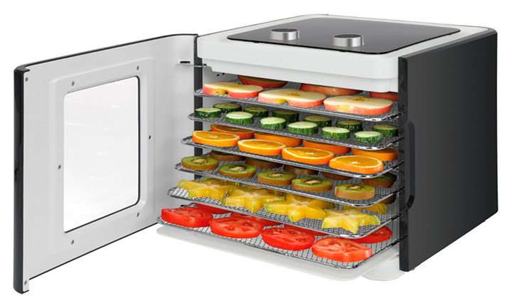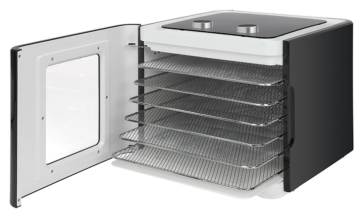 Сушилка для овощей и фруктов Clatronic DR 3773 предназначена для дегидрации фруктов, овощей, грибов, зелени, мяса и других продуктов в квартирах, частных домах, кафе и ресторанах. Модель оснащена электронным контролем температуры и теплоизолированной дверцей с большим смотровым окном. Корпус выполнен из пластика, решетки для сушки - из нержавеющей стали. Материалы поддона не содержат бисфенол А. В комплект поставки входит поддон для крошек и капель. Особенности: